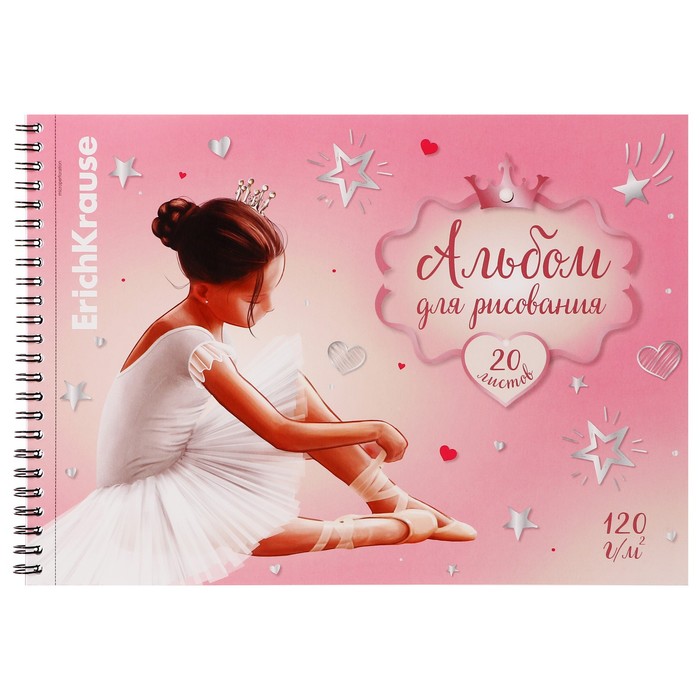 Альбом для рисования А4, 20 листов, блок 120 г/м², на спирали, Erich Krause "Pointes", 100% белизна, перфорация на отрыв, твердая подложка