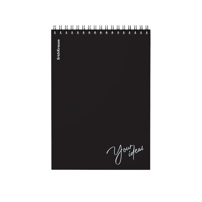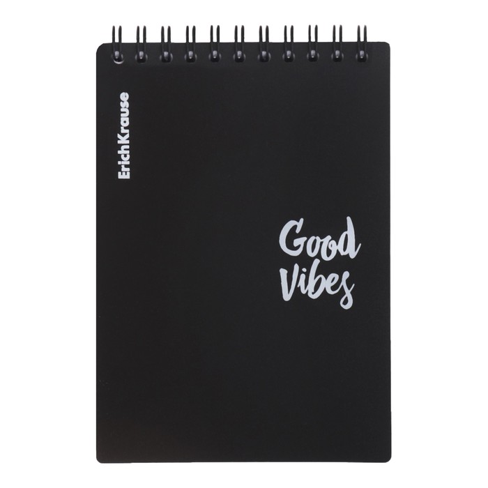 Блокнот на спирали A5, 80 листов, клетка , ErichKrause "Words", черный, пластиковая обложка шелкография, блок офсет белизна 100%, черный
