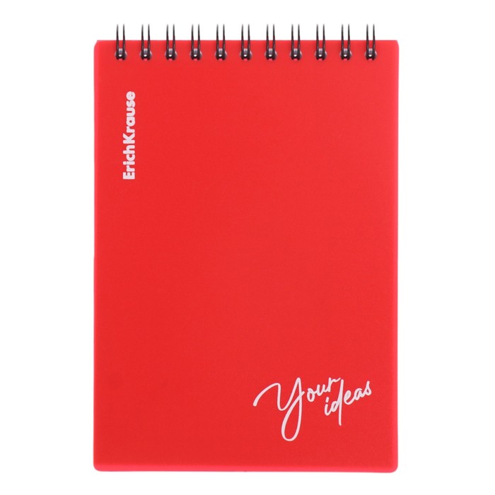 Блокнот на спирали A6 80 листов, клетка, ErichKrause "Words" пластиковая обложка шелкография, блок офсет белизна 100%, красный