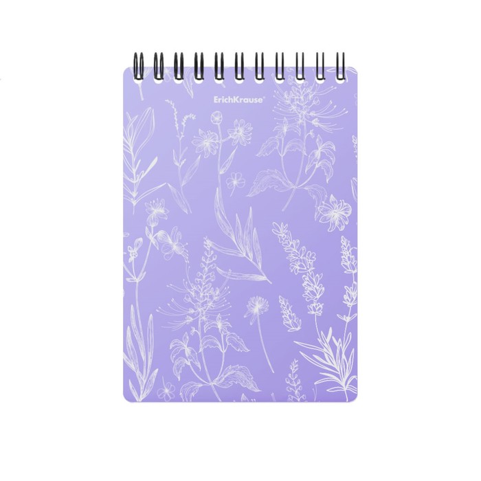 Блокнот на спирали А6, 80 листов, клетка , ErichKrause "Lavender", пластиковая обложка шелкография, блок офсет белизна 100%