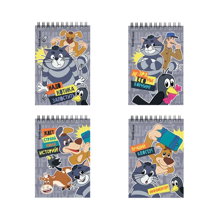 Блокнот на спирали А6, 60 листов, клетка, ErichKrause "Простоквашино", картонная обложка, блок офсет, белизна 100%, МИКС