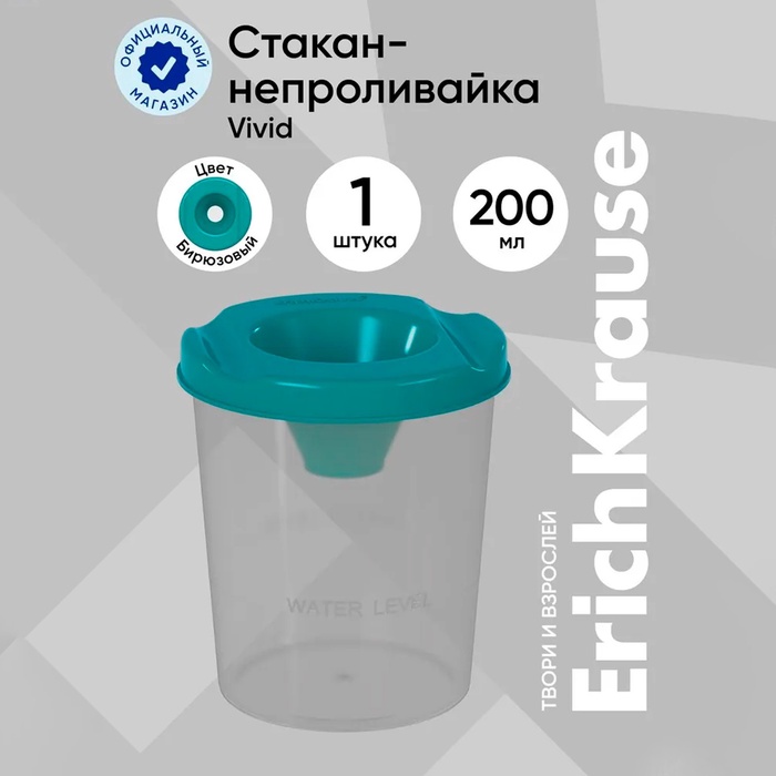 Стакан-непроливайка 200 мл, ErichKrause Vivid, бирюзовый