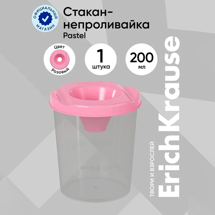 Стакан непроливайка 200мл ErichKrause Pastel, розовая