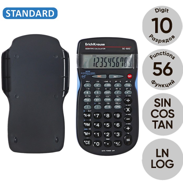 Калькулятор научный 10-разрядов ErichKrause SC-920, чёрный, рекомендован для ОГЭ и ЕГЭ