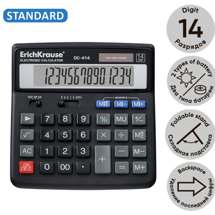 Калькулятор настольный 14-разрядный, ErichKrause DC-414