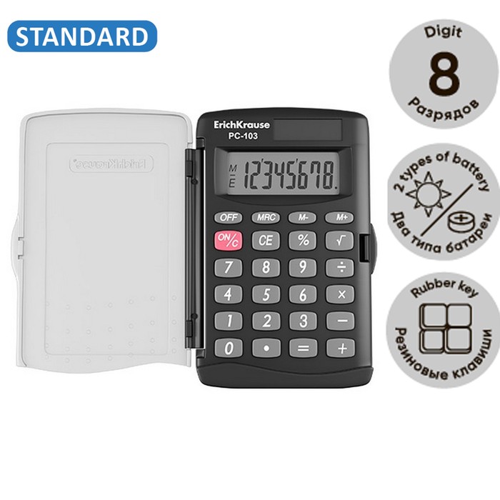 Калькулятор карманный 8-разрядов ErichKrause PC-103, чёрный