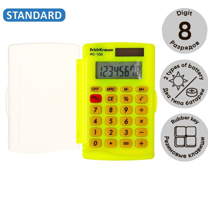 Калькулятор карманный 8-разрядов ErichKrause PC-103 Neon, желтый