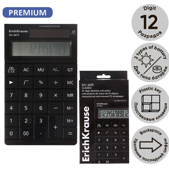 Калькулятор настольный 12-разрядов ErichKrause DC-2675 Classic, черный