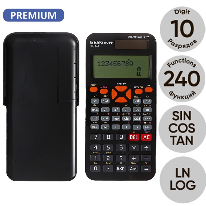 Калькулятор научный 10-разрядов ErichKrause SC-222 Classic, 240 функций, черный