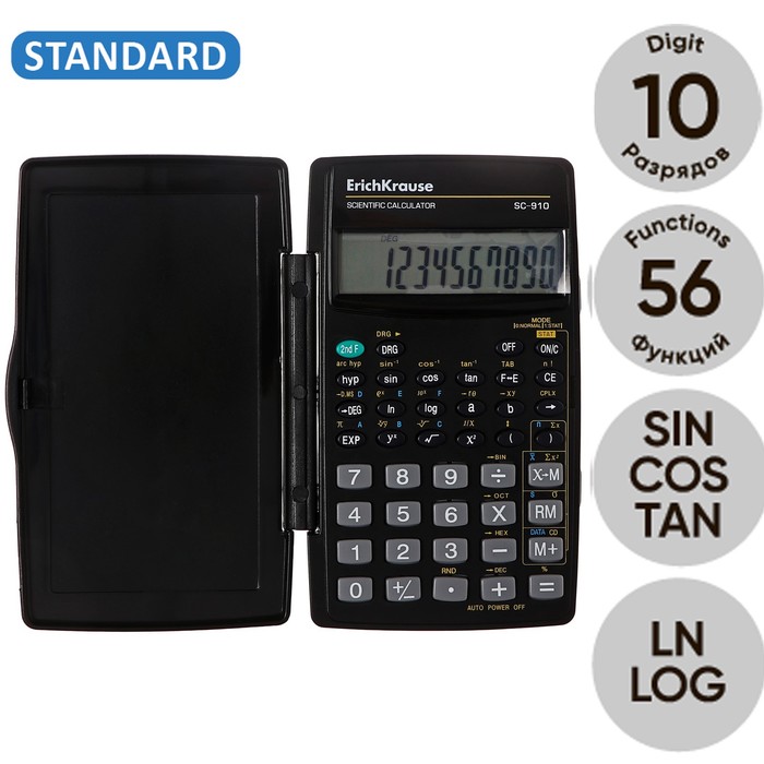 Калькулятор научный 10-разрядов ErichKrause SC-910, чёрный, рекомендован для ОГЭ и ЕГЭ