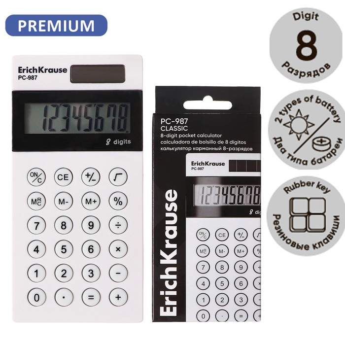 Калькулятор карманный 8-разрядов ErichKrause PC-987 Classic, белый