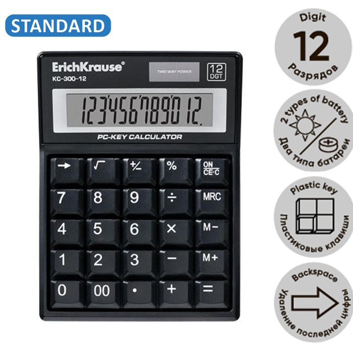 Калькулятор настольный 12-разрядов Erich Krause KC-300-12