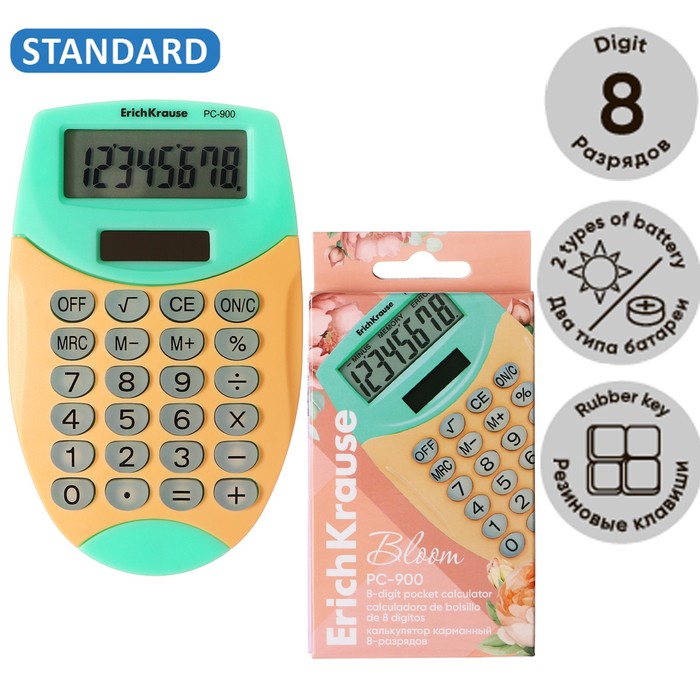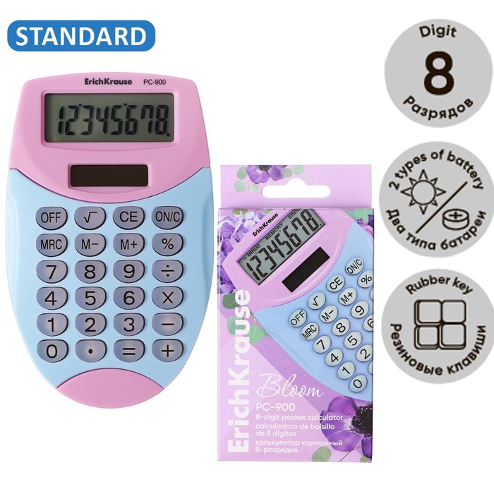 Калькулятор карманный 8-разрядов ErichKrause PC-900 Pastel Bloom, микс
