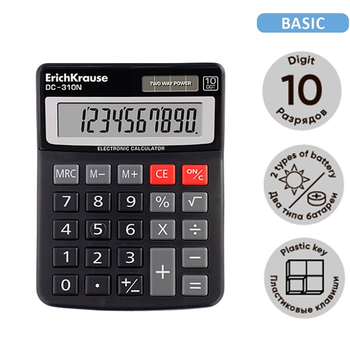 Калькулятор настольный 10-разрядный, ErichKrause DC-310N