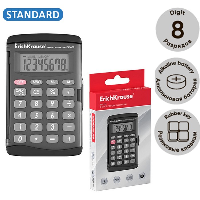 Калькулятор карманный 8-разрядов ErichKrause PC-131 Classic, черный