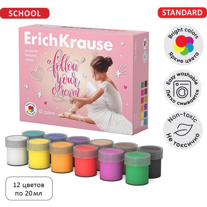 Гуашь 12 цветов по 20 мл ErichKrause "Pointes", в коробке