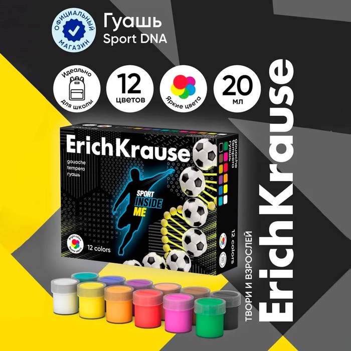 Гуашь 12 цветов по 20 мл ErichKrause "Sport DNA", в коробке