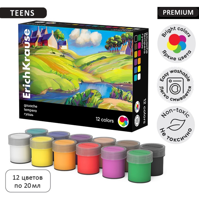 Гуашь 12 цветов по 20 мл, ErichKrause Art Spirit, в картонной коробке
