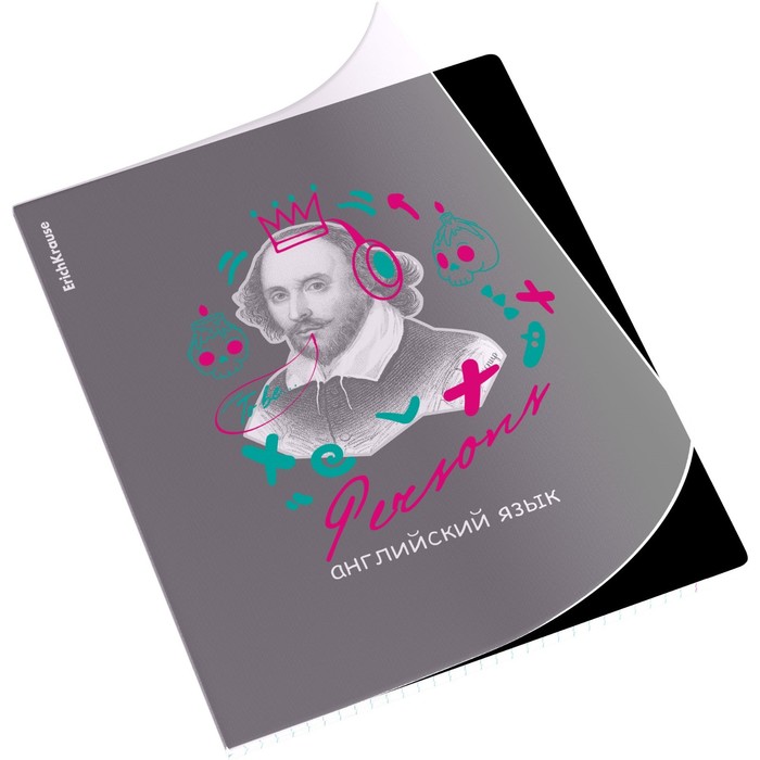 Тетрадь предметная АНГЛИЙСКИЙ ЯЗЫК, 48 листов в клетку, ErichKrause Persons, пластиковая обложка, шелкография, блок офсет 100% белизна, инфо-блок