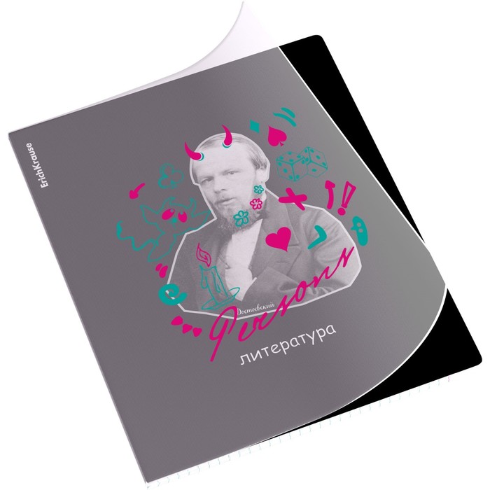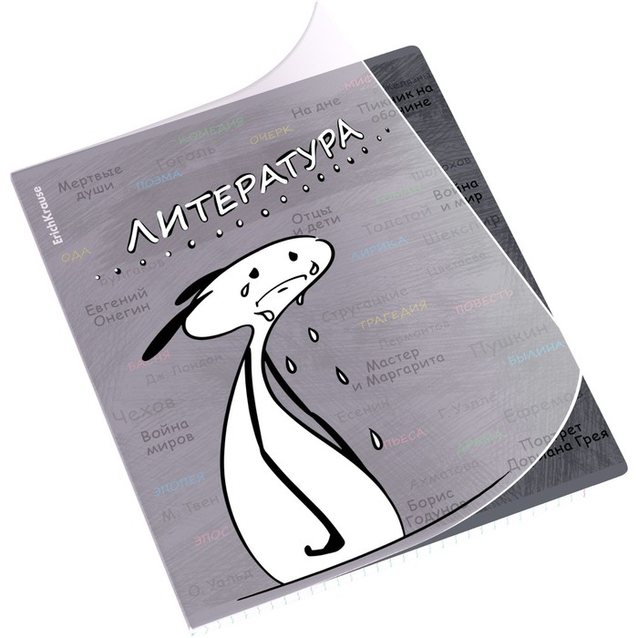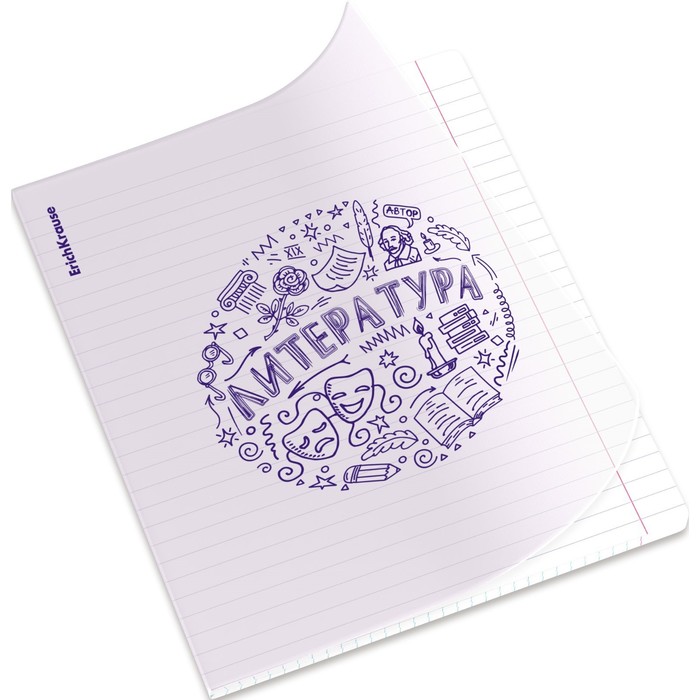 Тетрадь предметная ЛИТЕРАТУРА, 48 листов в линейку, ErichKrause "Чубрик", пластиковая обложка, шелкография, блок офсет 100% белизна, инфо-блок