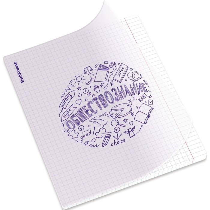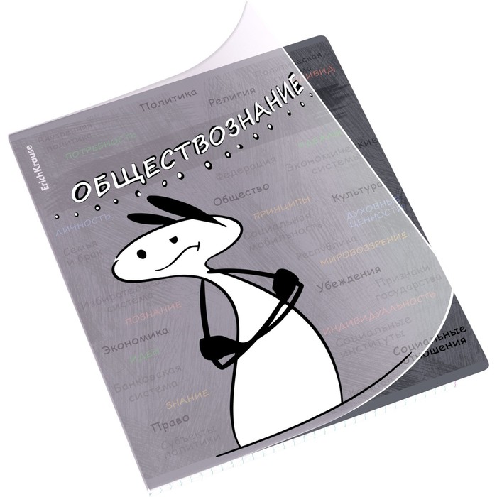Тетрадь предметная ОБЩЕСТВОЗНАНИЕ, 48 листов в клетку, ErichKrause "Чубрик", пластиковая обложка, шелкография, блок офсет 100% белизна, инфо-блок