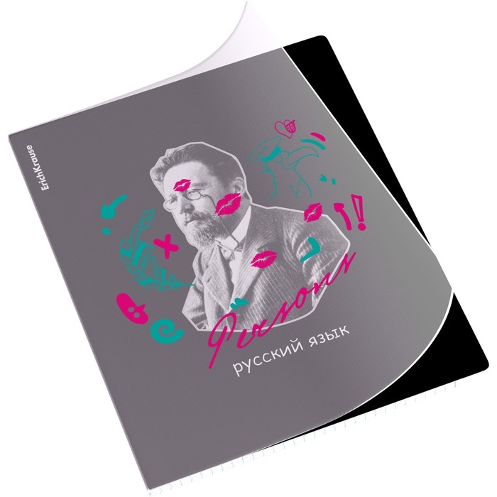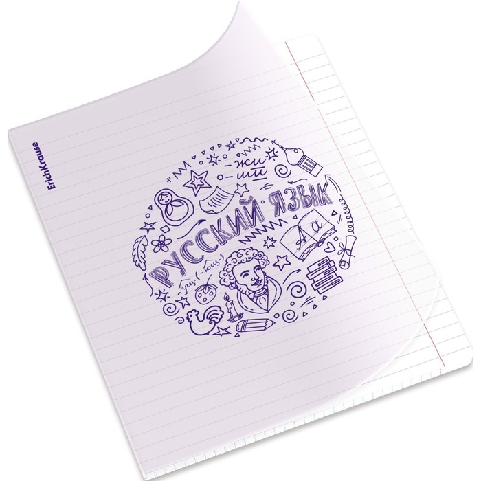 Тетрадь предметная РУССКИЙ ЯЗЫК, 48 листов в линейку, ErichKrause "Чубрик", пластиковая обложка, шелкография, блок офсет 100% белизна, инфо-блок