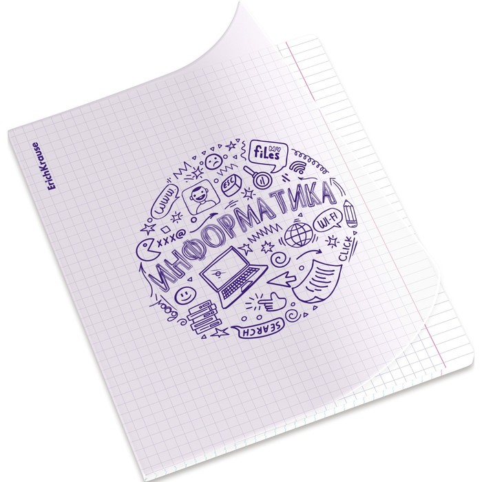 Тетрадь предметная ИНФОРМАТИКА, 48 листов в клетку, ErichKrause "Чубрик", пластиковая обложка, шелкография, блок офсет 100% белизна, инфо-блок