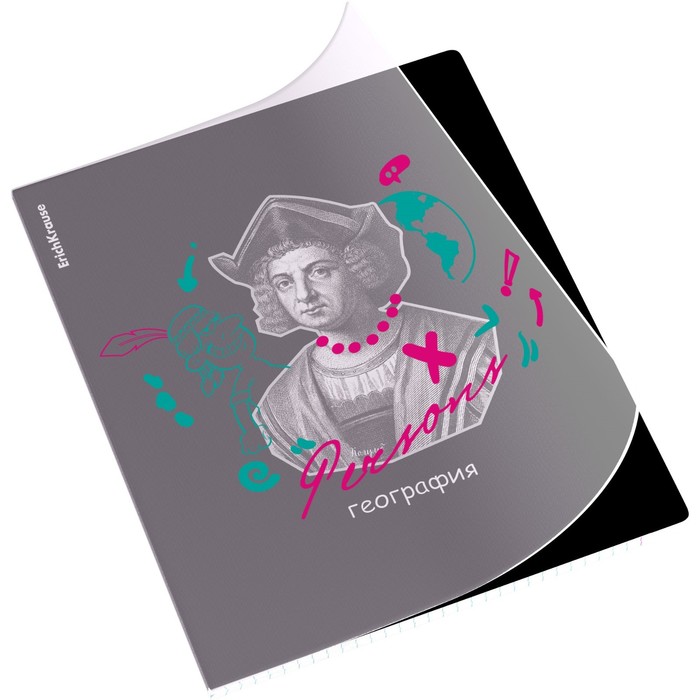 Тетрадь предметная ГЕОГРАФИЯ, 48 листов в клетку, ErichKrause Persons, пластиковая обложка, шелкография, блок офсет 100% белизна, инфо-блок