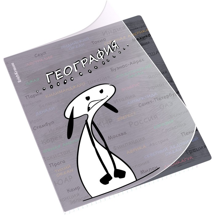 Тетрадь предметная ГЕОГРАФИЯ, 48 листов в клетку, ErichKrause "Чубрик", пластиковая обложка, шелкография, блок офсет 100% белизна, инфо-блок