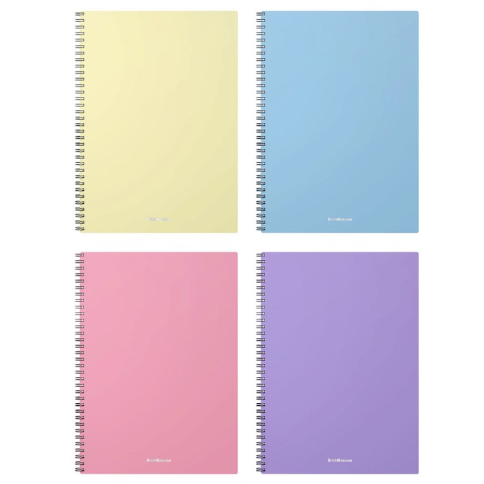 Тетрадь А4 на спирали, 80 листов в клетку, ErichKrause Pastel, пластиковая обложка, блок офсет 100% белизна, МИКС
