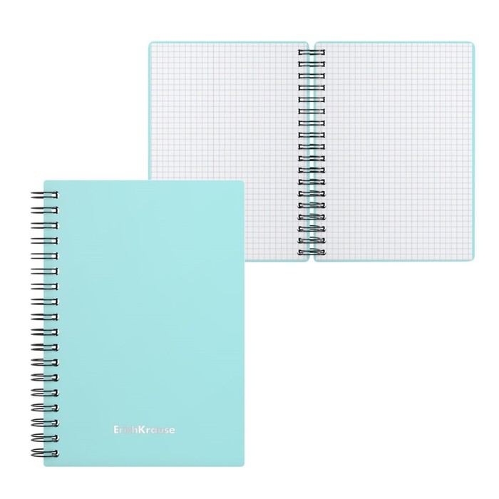 Тетрадь А6 на спирали, 80 листов в клетку, ErichKrause Pastel Mint, пластиковая обложка, тиснение "песок", блок офсет 100% белизна, мятная