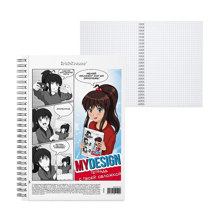 Тетрадь на спирали, 80 листов в клетку, ErichKrause MyDesign, пластиковая обложка, блок офсет 100% белизна, с принтом