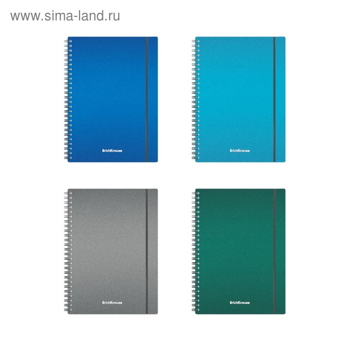 Тетрадь А4 на спирали, 80 листов в клетку, ErichKrause Ice Metallic, пластиковая обложка, на резинке, блок офсет 100% белизна, МИКС