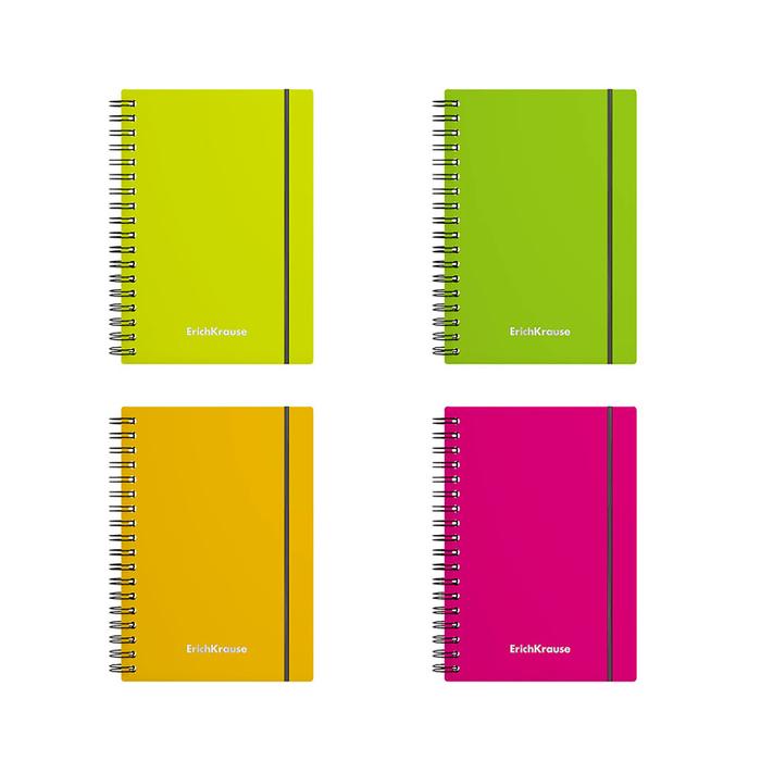 Тетрадь на спирали, 80 листов в клетку, ErichKrause Neon, пластиковая обложка, на резинке, блок офсет 100% белизна, МИКС