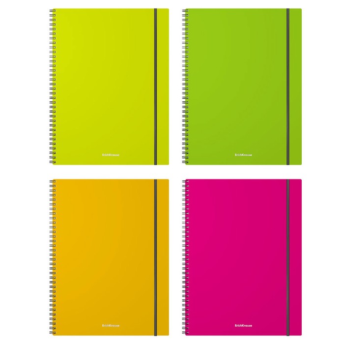 Тетрадь А4 на спирали, 80 листов в клетку, ErichKrause Neon, пластиковая обложка, на резинке, блок офсет 100% белизна, МИКС