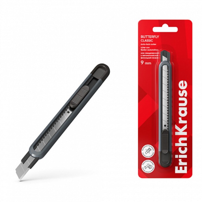 Нож канцелярский 9мм, ErichKrause "Butterfly Classic", с автоматической фиксацией лезвия, серый