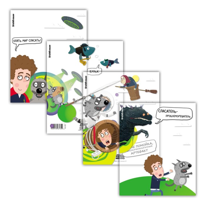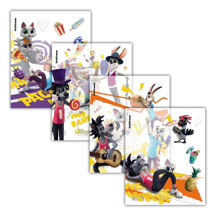 Набор обложек ПП 12 шт, 212 х 347 мм, 80 мкм, ErichKrause "Приключения Пети и Волка", для тетрадей и дневников, фиксированная, прочные швы, микс
