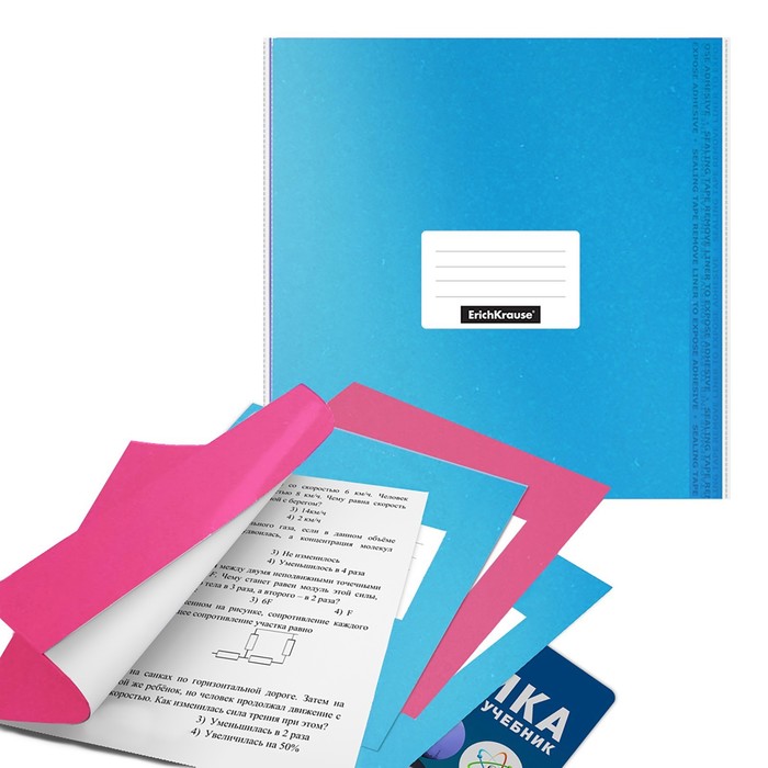 Обложка ПП 212х395мм, 80мкм, ErichKrause "Fizzy Clear", для тетрадей и дневников, с клеевым краем и увеличенным клапаном