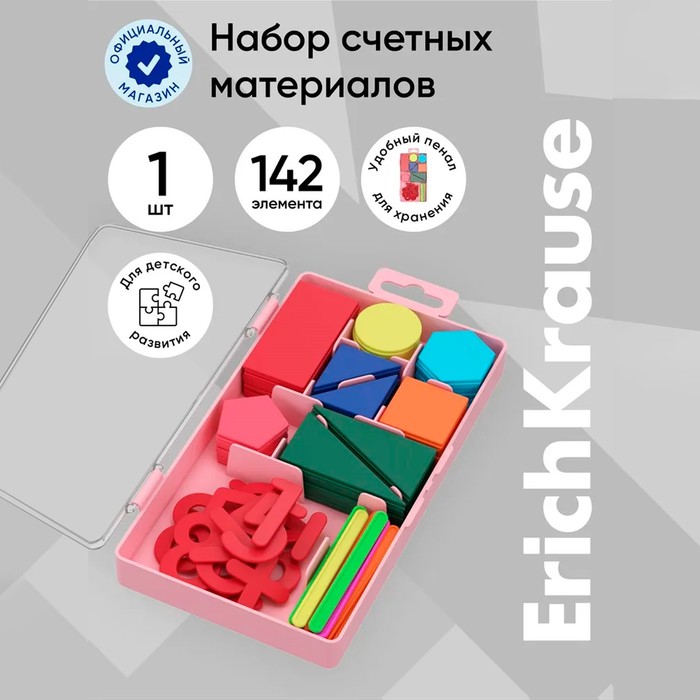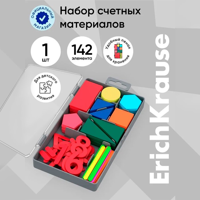 Набор счетных материалов "Учись считать", ErichKrause Classic, 142 элемента, пластик, МИКС