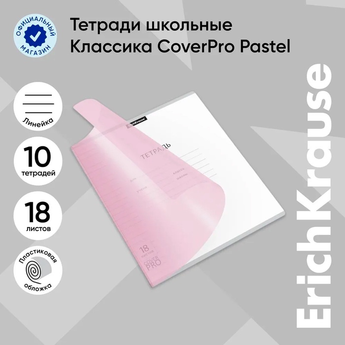 Тетрадь 18 листов в линейку, ErichKrause "Классика CoverPrо Pastel", пластиковая обложка, блок офсет 100% белизна, розовая