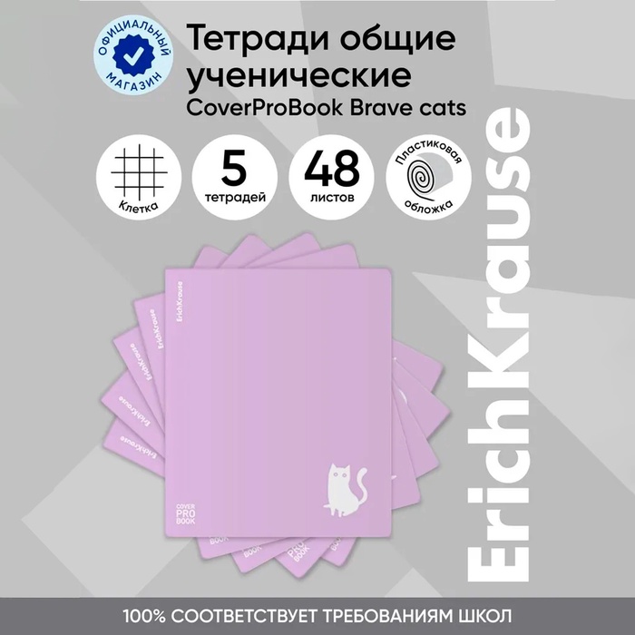 Тетрадь 48 листов в клетку ErichKrause "CoverProBook Brave cats", пластиковая обложка с тиснением, шелкография, блок офсет 100% белизны, микс