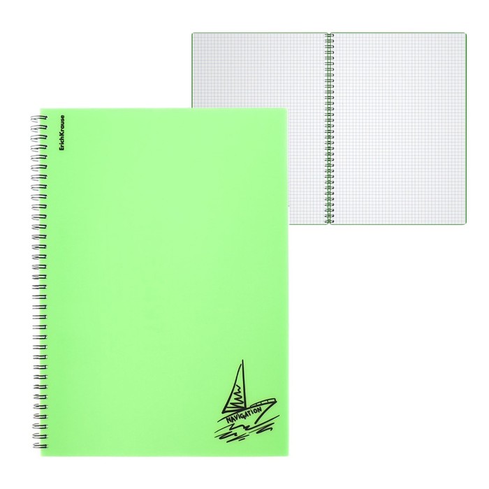 Тетрадь А4 на спирали, 80 листов в клетку, ErichKrause Motion, пластиковая обложка, блок офсет 100% белизна, зелёная