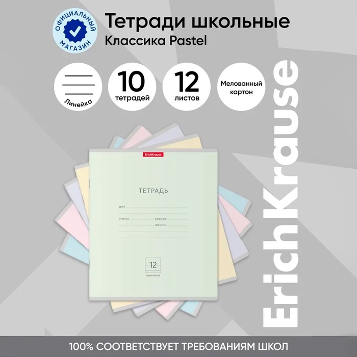 Тетрадь 12 листов в линейку, ErichKrause "Классика Pastel", обложка мелованный картон, блок офсет 100% белизна, МИКС