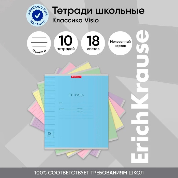 Тетрадь 18 листов в линейку, ErichKrause "Классика Visio", обложка мелованный картон, блок офсет 100% белизна, МИКС