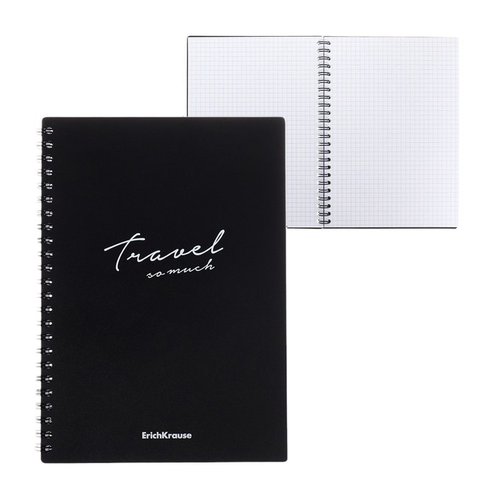 Тетрадь на спирали, 80 листов в клетку, ErichKrause Classic Words, пластиковая обложка, блок офсет 100% белизна, чёрная