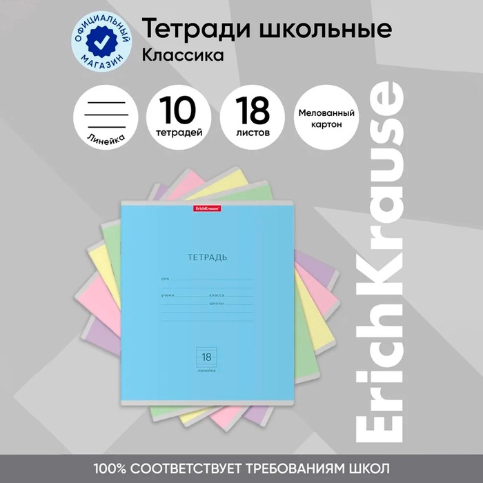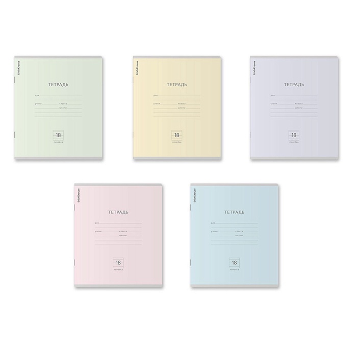 Тетрадь 18 листов в линейку, ErichKrause "Классика Pastel", обложка мелованный картон, блок офсет 100% белизна, МИКС
