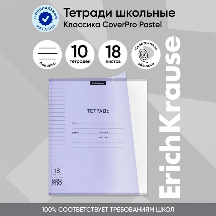 Тетрадь 18 листов в линейку, ErichKrause "Классика CoverPrо Pastel", пластиковая обложка, блок офсет 100% белизна, сиреневая