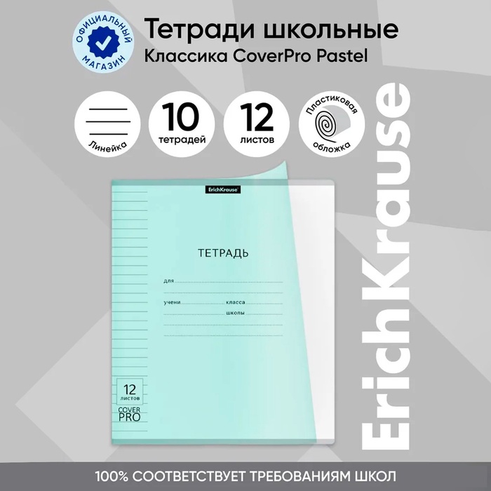 Тетрадь 12 листов в линейку, ErichKrause "Классика CoverPrо Pastel", пластиковая обложка, блок офсет 100% белизна, мятная
