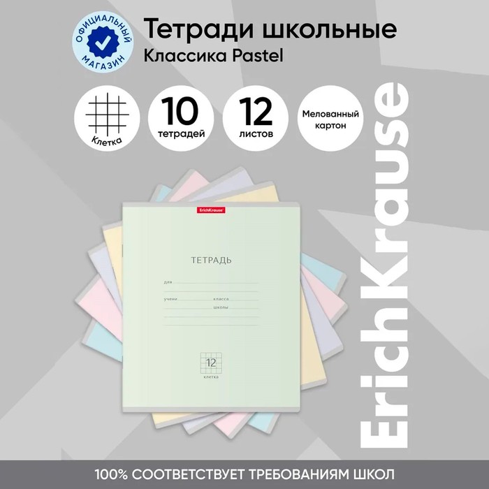 Тетрадь 12 листов в клетку, ErichKrause "Классика Pastel", обложка мелованный картон, блок офсет 100% белизна, МИКС