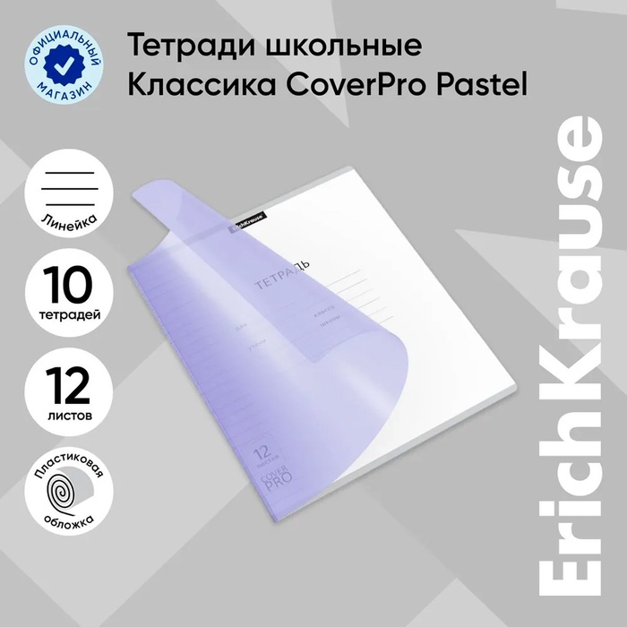 Тетрадь 12 листов в линейку, ErichKrause "Классика CoverPrо Pastel", пластиковая обложка, блок офсет 100% белизна, сиреневая